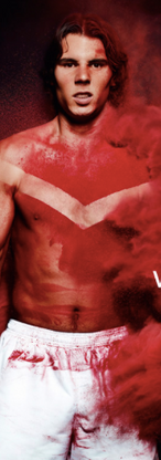 There were two creative directions chosen for this campaign. One with the Nike Chevron Eugene Jacket on the athlete with their fingers raised up as a V as in V is for Victory and one with their bare chests and getting colored powder thrown on them an creating a V on their chests.